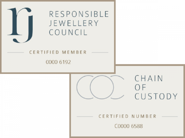 Nous sommes membre certifié du RJC (Responsible Jewellry Council). Il s'agit du nom commercial du 'Council for Responsible Jewellery Practices Ltd', dont la mission est de promouvoir des pratiques éthiques, sociales et environnementales responsables, qui respectent les droits de l'homme tout au long de la chaîne d'approvisionnement des bijoux en or et en platine métal, de la mine au commerce de détail. Depuis 2012 déjà, le RJC est membre à part entière de l'Alliance ISEAL, l'association mondiale pour les normes de durabilité.